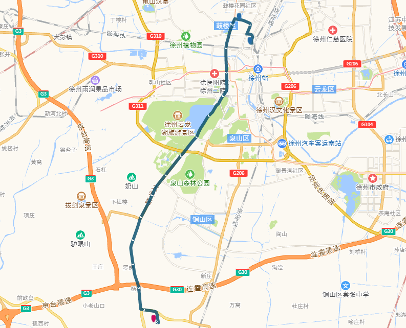 (2)沿途??空军c(diǎn)(公交站臺):新建北村、電力醫(yī)院、祥和小區(qū)、馬場村(中山北路)、鼓樓區(qū)政府、后勤學(xué)院、礦大南湖校區(qū)、國基城邦、臺上草莓小鎮(zhèn)。