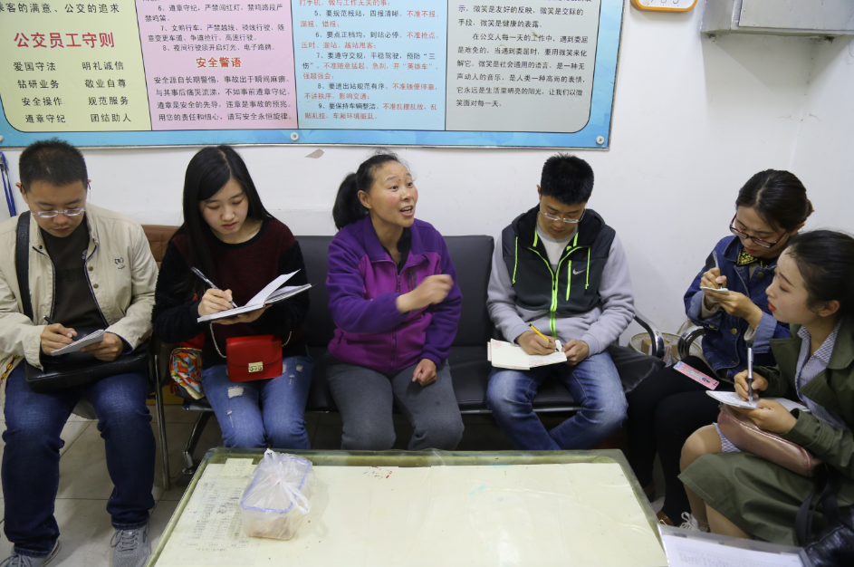 孫師傅發(fā)車(chē)了,通訊員們?cè)诟?chē)采訪環(huán)節(jié),仔細(xì)觀察、記錄孫師傅在行車(chē)中的“一舉一動(dòng)”,尋找采訪細(xì)節(jié)。在孫師傅休停時(shí),大家紛紛拿出相機(jī)、手機(jī),切磋拍照經(jīng)驗(yàn)。為達(dá)到培訓(xùn)目的,采訪前要求通訊員們通過(guò)認(rèn)真思考,提前擬定好了采訪提綱,現(xiàn)場(chǎng)采訪環(huán)節(jié),通訊員們積極踴躍根據(jù)自己擬定好的問(wèn)題對(duì)孫師傅提問(wèn),并認(rèn)真記錄。通訊員“現(xiàn)場(chǎng)練兵”在輕松愉快的氣氛中結(jié)束了,大家表示這種培訓(xùn)形式有趣有收獲。