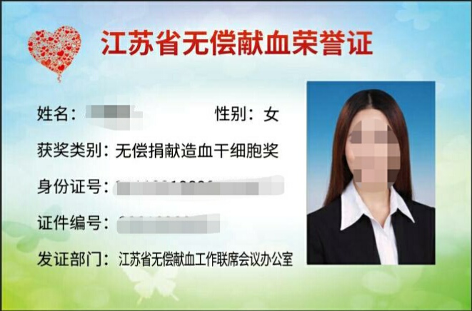 同時,為認真做好“三免”政策落實,徐州公交還在調(diào)度室、車場、車輛等醒目位置張貼了“江蘇省無償獻血榮譽證”樣式及《江蘇省無償獻血榮譽證使用說明》等宣傳材料,同時加強員工教育,確保知曉率100%,提升員工對該證件的識別、辨別能力。(圖為江蘇省無償獻血榮譽證彩色樣版)